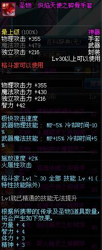 | 30 | 圣物 : 炽焰天使之碎骨手套 | *Lv29~36普通地下城怪物掉落 |