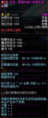 | 25 | 圣物 : 雪魂冰魄之碎骨手套 | *Lv24~31普通地下城怪物掉落 | ||