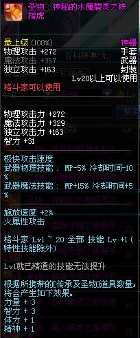 | 20 | 圣物 : 神秘的水魔碧灵之铁指虎 | *Lv19~26普通地下城怪物掉落 | ||