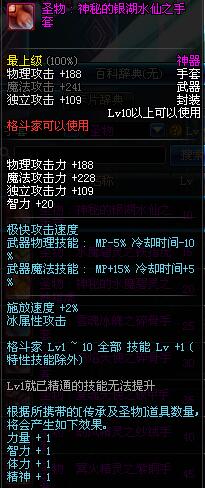 | 10 | 圣物 : 神秘的银湖水仙之手套 | *Lv8~14普通地下城怪物掉落 |