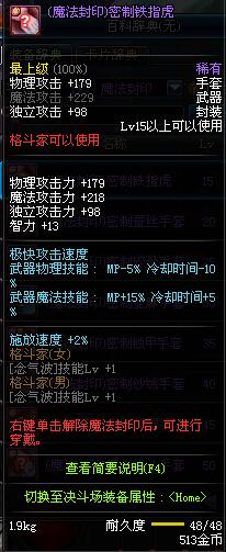 | 15 | (魔法封印)密制铁指虎 | *Lv13~21普通地下城怪物掉落 *完成[专职贺礼]任务 |