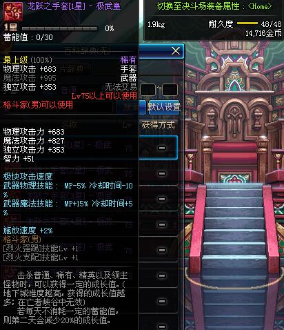 | 75 | 龙跃之手套[1星] - 极武皇 | *完成二次觉醒任务后可以从NPC小铁柱处获得此道具。 | ||
