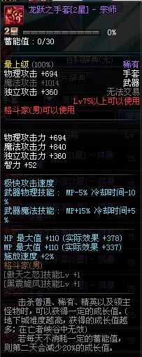 | 75 | 龙跃之手套[3星] - 宗师 | *完成二次觉醒任务后可以从NPC小铁柱处获得此道具。 | ||