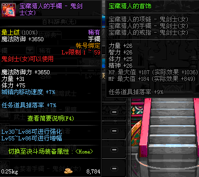 1~59 宝藏猎人的手镯 - 鬼剑士(女) *吟游诗人艾丽丝 出售 (虚空魔石碎片 900)