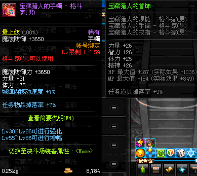 1~59 宝藏猎人的手镯 - 黑暗武士 *吟游诗人艾丽丝 出售 (虚空魔石碎片 900)