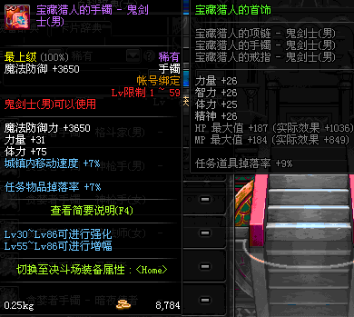 1~59 宝藏猎人的手镯 - 鬼剑士(男) *吟游诗人艾丽丝 出售 (虚空魔石碎片 900)
