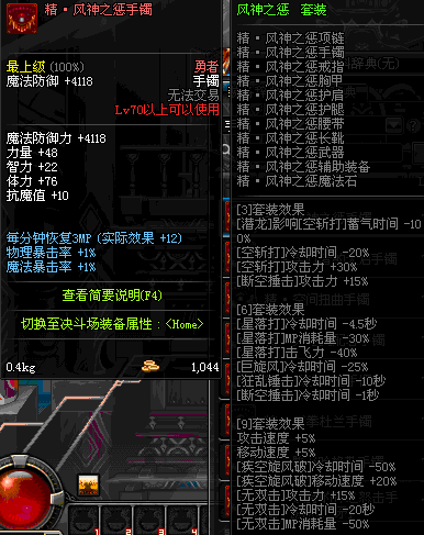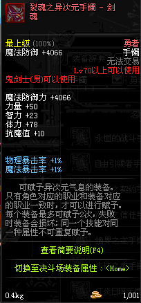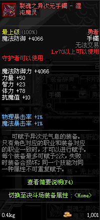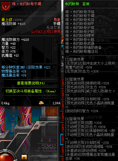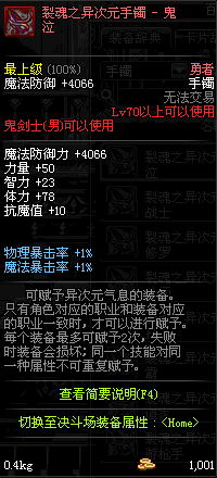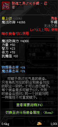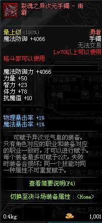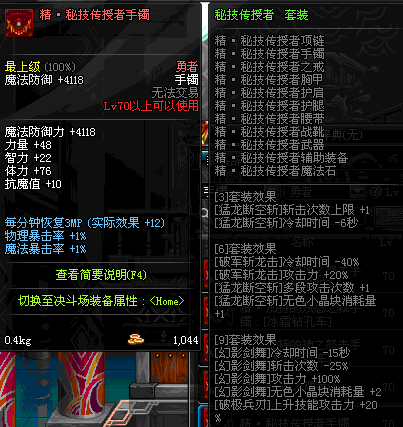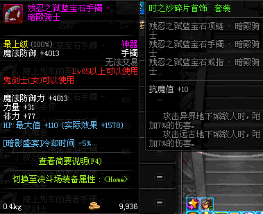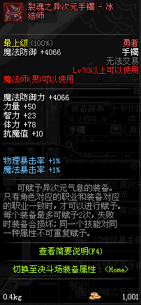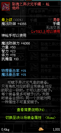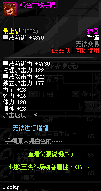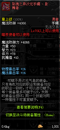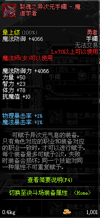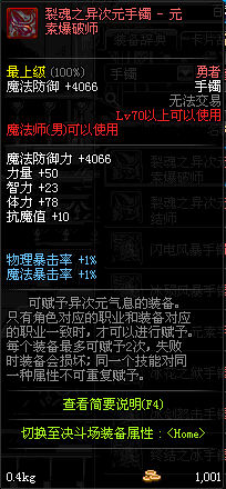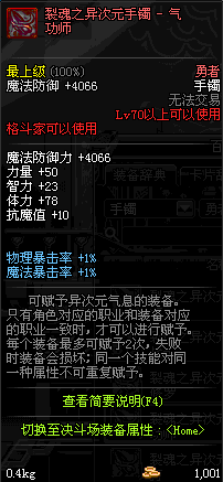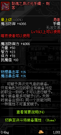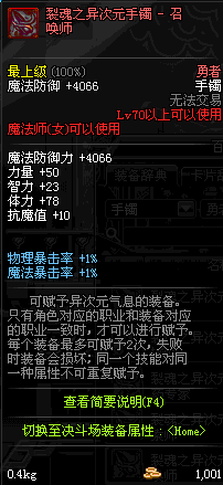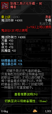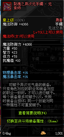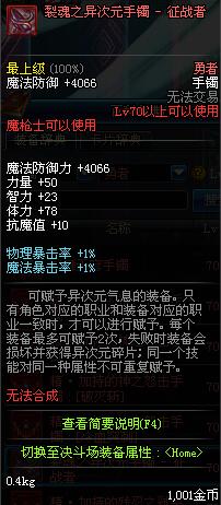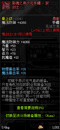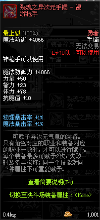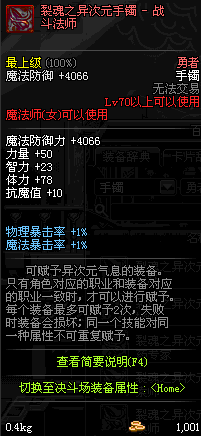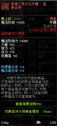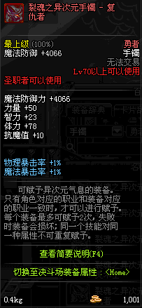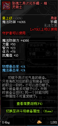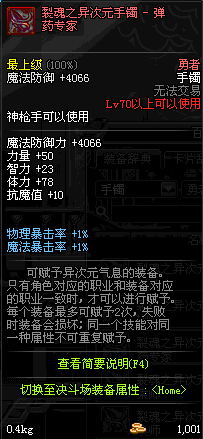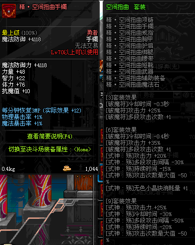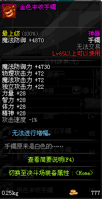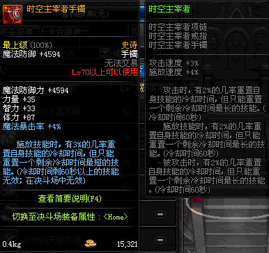 70 时空主宰者手镯 *Lv69~76深渊地下城怪物掉落