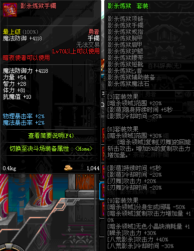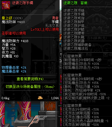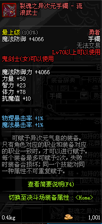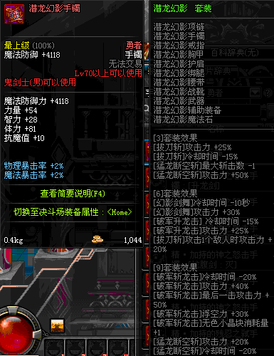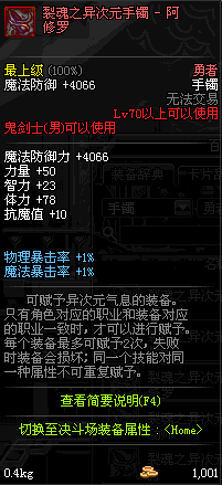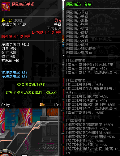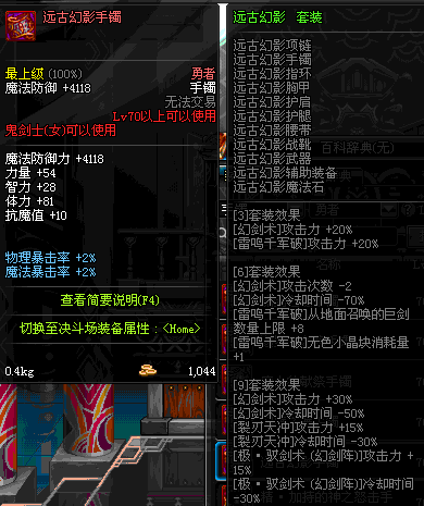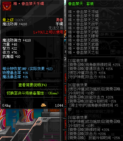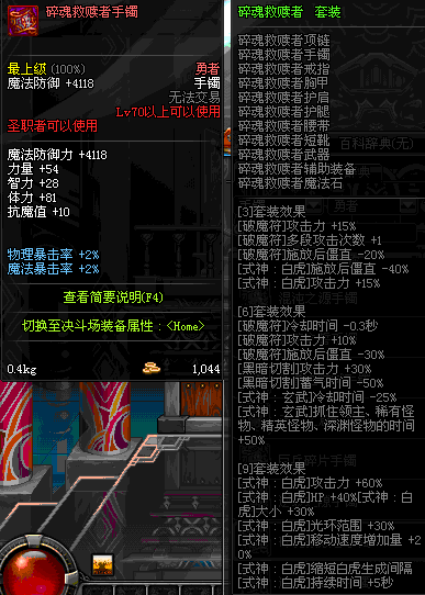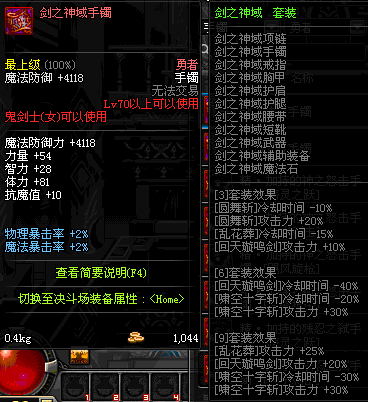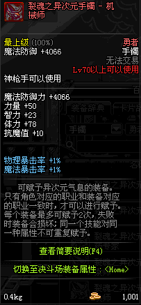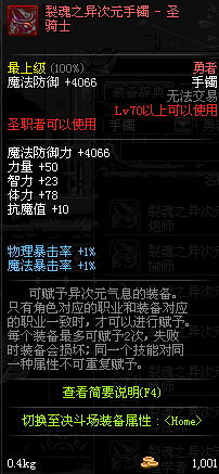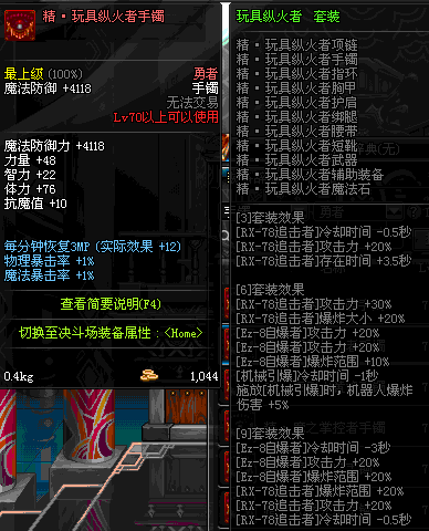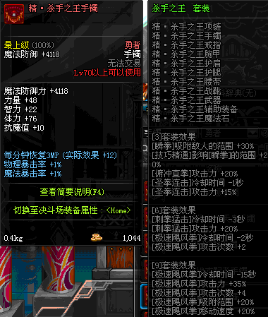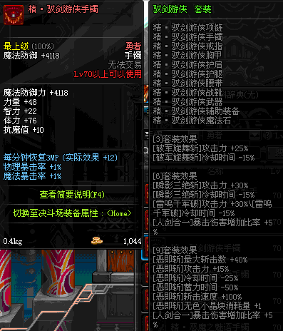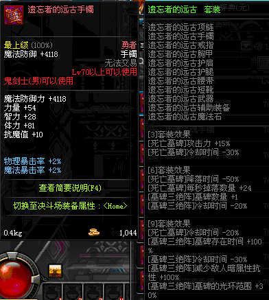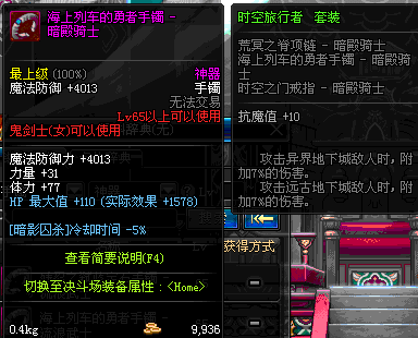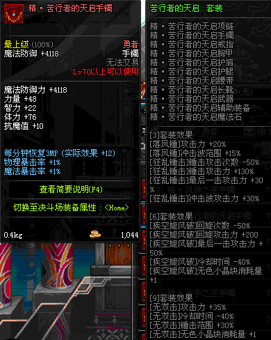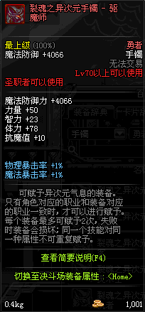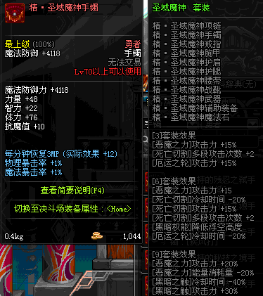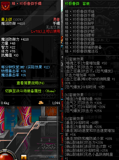 70 时空主宰者手镯 *Lv69~76深渊地下城怪物掉落