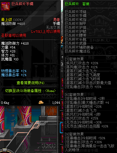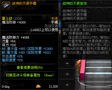 60 战神的天袭手镯 *Lv69~76深渊地下城怪物掉落