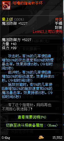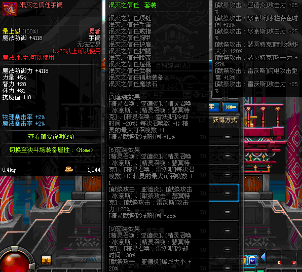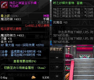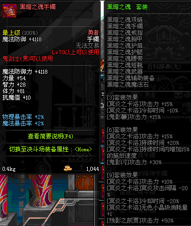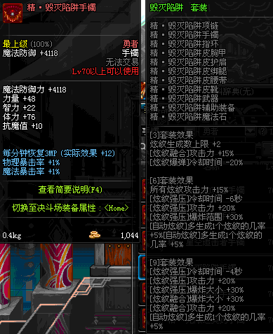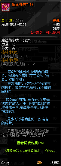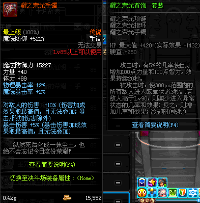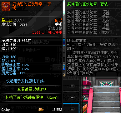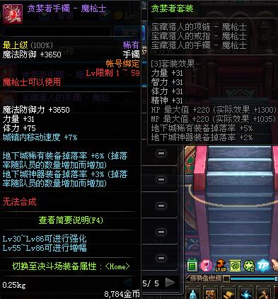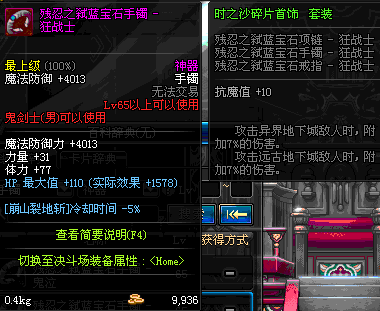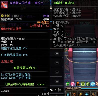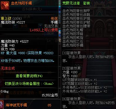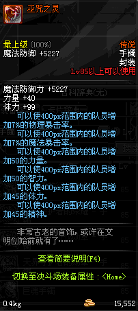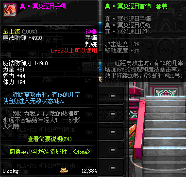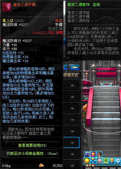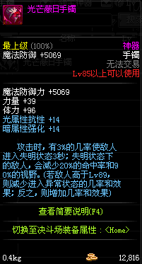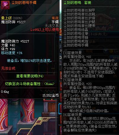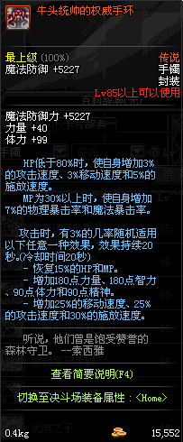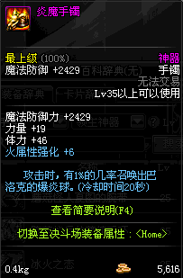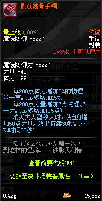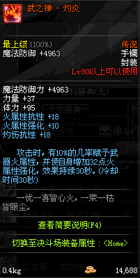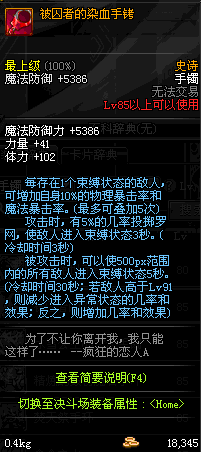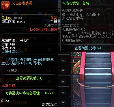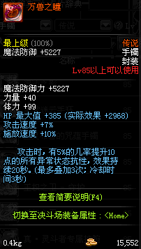 85 焚天祭手环 *Lv84~91深渊地下城怪物掉落
