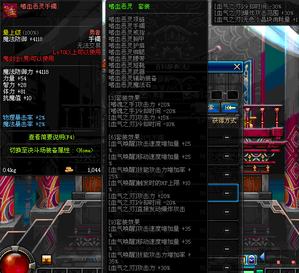 85 血色残阳手镯 *昨日之巴斯顿 掉落 (在远古地下城里出没。)