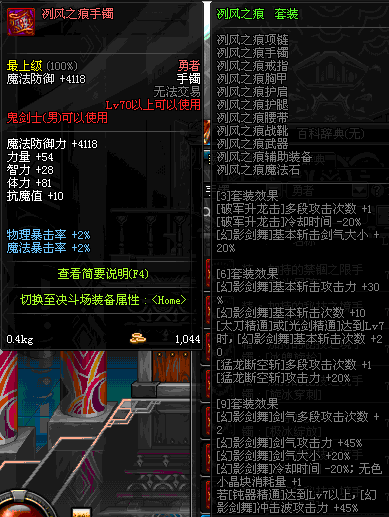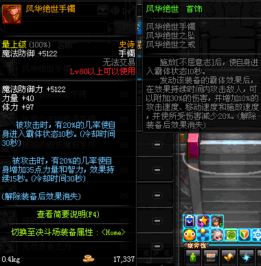 80 风华绝世手镯 *Lv79~86深渊地下城怪物掉落