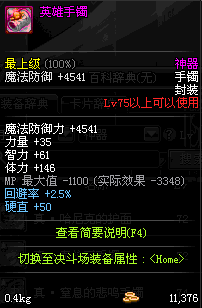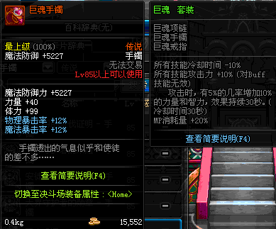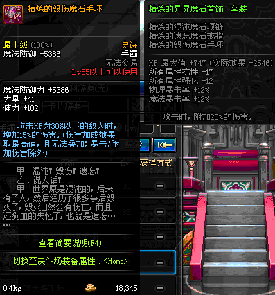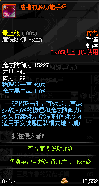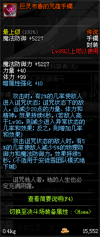 85 精炼的毁伤魔石手环 *Lv84~91深渊地下城怪物掉落