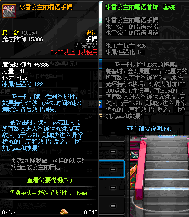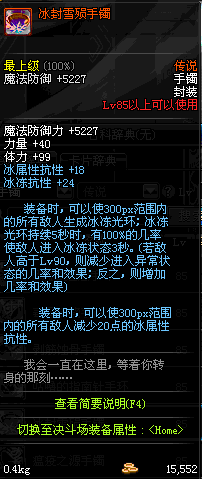 85 冰雪公主的霜语手镯 *Lv84~91深渊地下城怪物掉落
