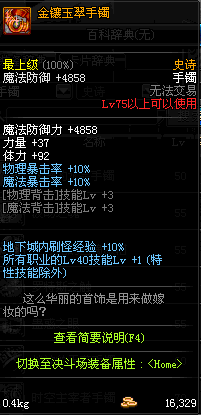 75 金镶玉翠手镯 *Lv75~81深渊地下城怪物掉落