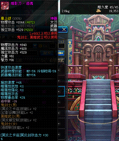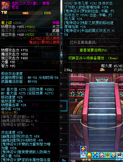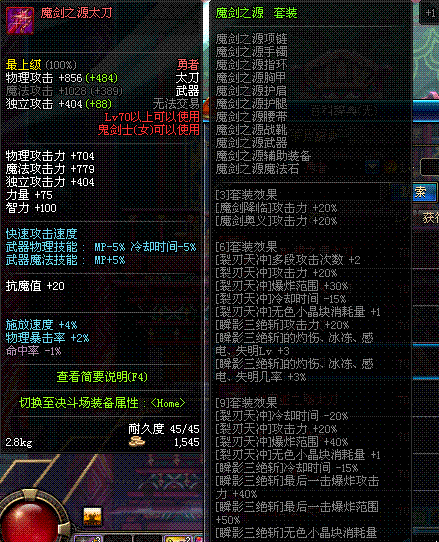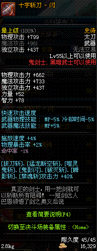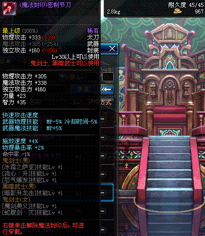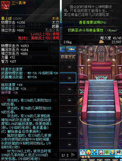 | 45 | 圣物 : 玄月精灵之梅轩刀 | *Lv45~51普通地下城怪物掉落 |