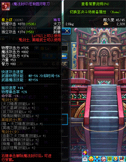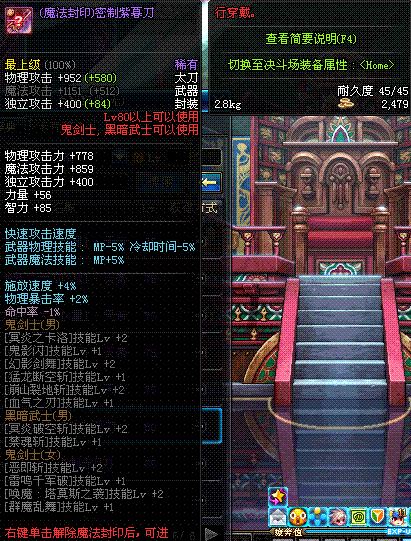 | 80 | (魔法封印)密制紫暮刀 | *Lv80~86普通地下城怪物掉落 |