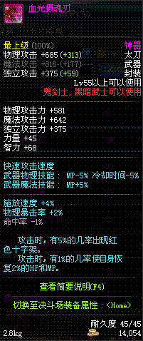 | 55 | 血光摄魂刃 | *Lv53~61普通地下城怪物掉落 *在加百利的神秘商店购买 |