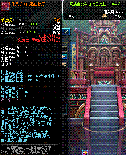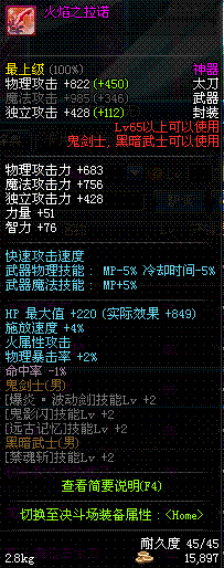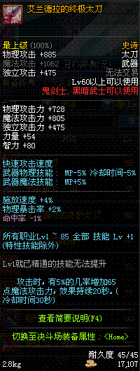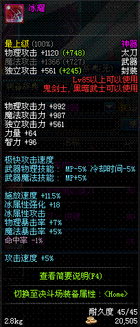 | 85 | 炽炎炼魂太刀 | *炽炎之艾格尼丝 掉落(地下城: 擎天之柱 5图) *设计图(地下城 擎天之柱 登场的NPC加百利 出售) |