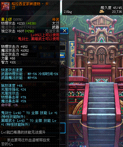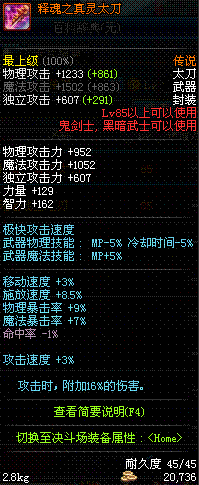 | 85 | 释魂之真灵太刀 | *设计图 (时空之门地区 - 吟游诗人艾丽丝 出售) | * 狂战士 | |