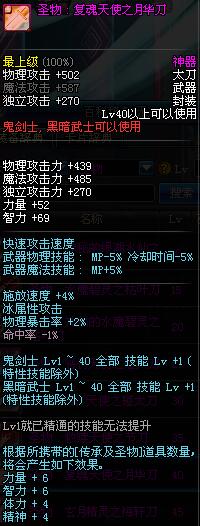 | 40 | 圣物 : 复魂天使之月华刀 | *Lv39~46普通地下城怪物掉落 |