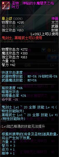 | 15 | 圣物 : 水魔碧灵之枯叶刀 | *Lv13~21普通地下城怪物掉落 |
