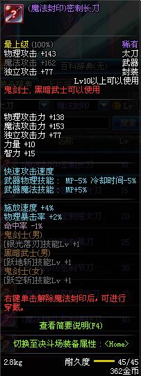 | 15 | (魔法封印)密制枯叶刀 | *Lv13~21普通地下城怪物掉落 *完成[专职贺礼]任务 |