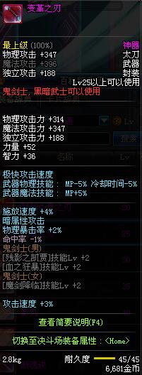 | 25 | 变革之刃 | *Lv24~31普通地下城怪物掉落 *在加百利的神秘商店购买 |