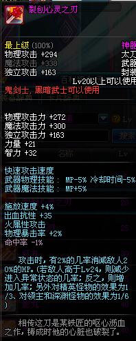 | 20 | 裂创心灵之刃 | *Lv19~26普通地下城怪物掉落 *在加百利的神秘商店购买 |