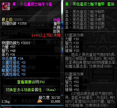 | 80 | 真 · 黑色瘟疫之暗牙斗篷 | *设计图(70LV以上普通地下城 登场的NPC加百利 出售) *黑色瘟疫之暗牙斗篷 → 用远古神器装备进化书升级(NPC船长鲁特 出售) |
