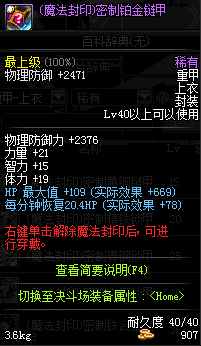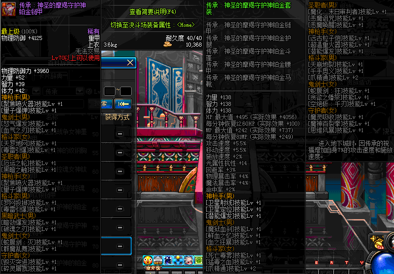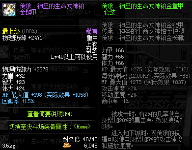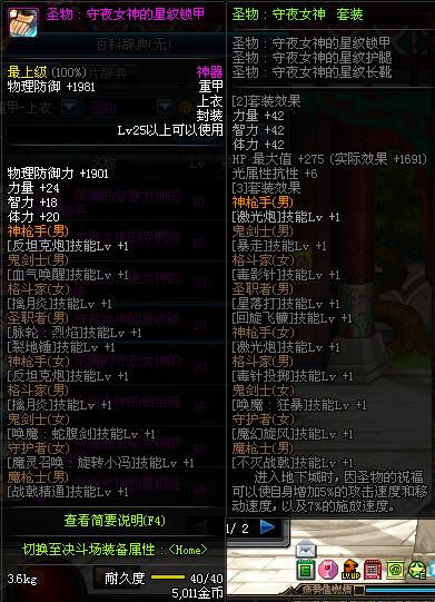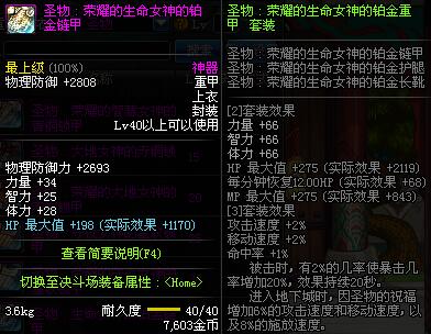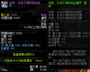 | 40 | 圣物 :荣耀的生命女神的铂金链甲 | *Lv39~46普通地下城怪物掉落 |
