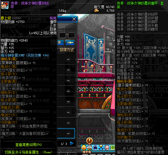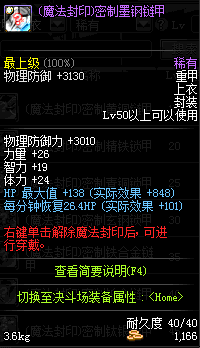 | 45 | 圣物 :战争女神的墨钢链甲 | *Lv45~51普通地下城怪物掉落 |