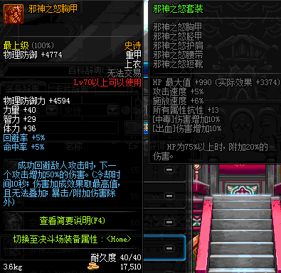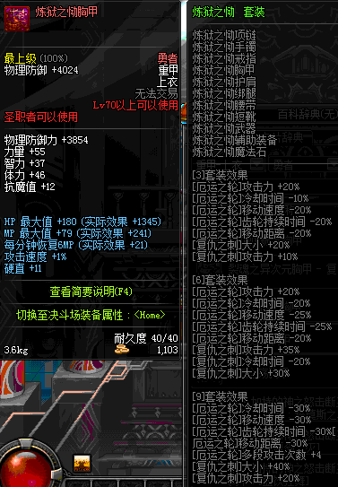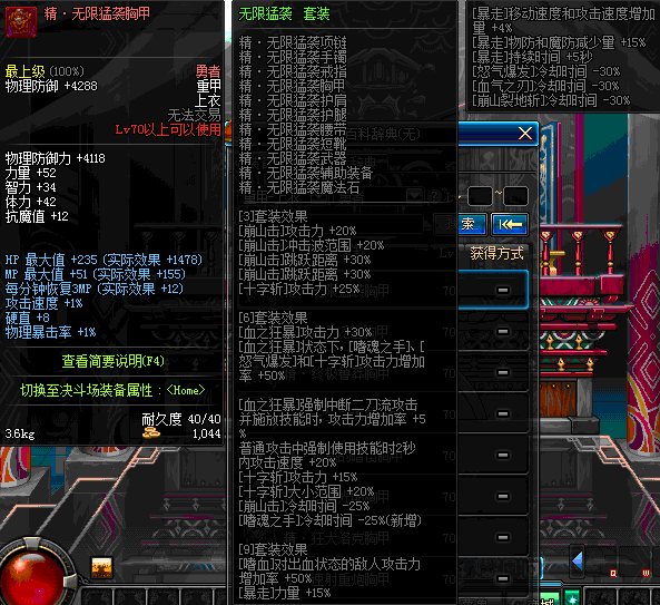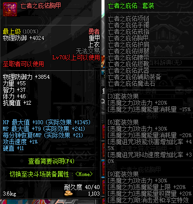 | 70 | 邪神之怒胸甲 | *Lv69~76深渊地下城怪物掉落 | 邪神之怒套装 | |