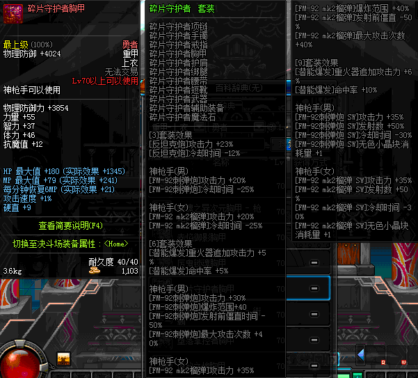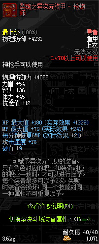| 70 | 裂魂之异次元胸甲 - 枪炮师 | |||