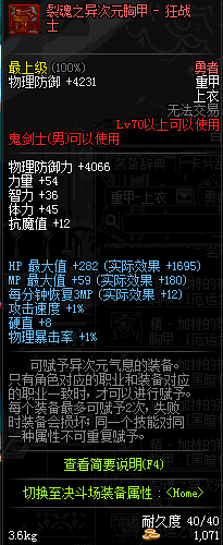 | 70 | 裂魂之异次元胸甲 - 狂战士 | |||