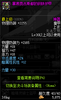 | 30 | 暴君奥古斯都的钢铁护甲 | *暴君奥古斯都 掉落(暴君的祭坛) *在NPC克伦特的物品店购买(阿拉德陨石×64) |