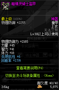 | 30 | 暗精灵骑士盔甲 | *精灵骑士隆美尔 掉落(英雄冢) *在NPC克伦特的物品店购买(阿拉德陨石×64) |