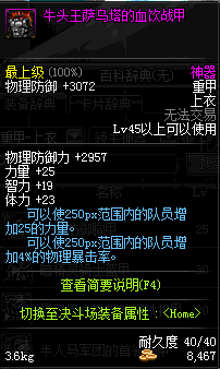 | 45 | 牛头王萨乌塔的血饮战甲 | *牛头王萨乌塔 掉落(冰刺庭院) *在NPC敏泰的物品店购买(阿拉德陨石×147) |