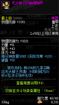 | 50 | 无头骑士的幽魂胸甲 | *无头骑士 掉落(暮色之城) *在NPC敏泰的物品店购买(阿拉德陨石×174) |