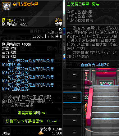 | 60 | 空间支配者胸甲 | *在NPC歌兰蒂斯·格拉西亚的物品店购买 | 玄冥精灵重甲 套装 | |