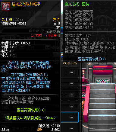| 75 | 逆龙之战破敌铠甲 | *Lv74~81深渊地下城怪物掉落 | 逆龙之战 套装 | |