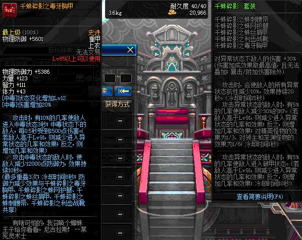 | 85 | 千蛛碎影之毒牙胸甲 | *Lv84~91深渊地下城怪物掉落 | 千蛛碎影 套装 | |
