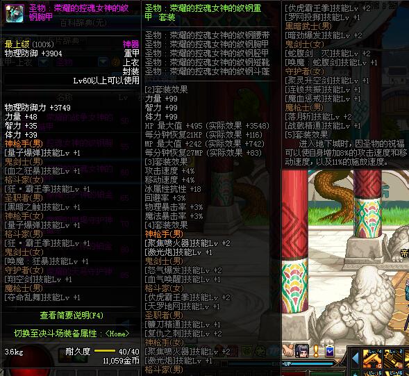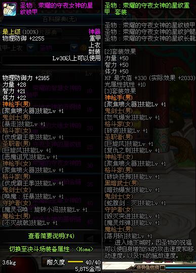 | 辅助装备: | 全职业 鬼剑士 女鬼剑 女格斗 男格斗 神枪手 女枪手 魔法师 男法师 圣职者 暗夜使者 守护者 |