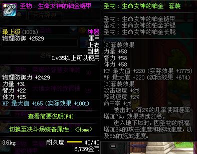 | 35 | 圣物 :生命女神的铂金链甲 | *Lv34~41普通地下城怪物掉落 |