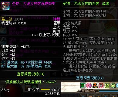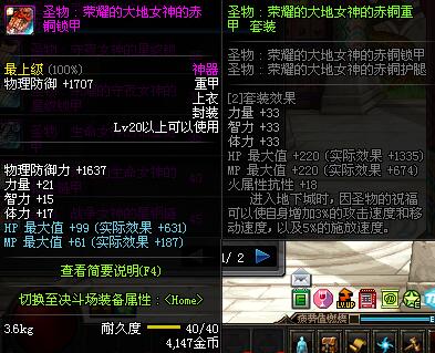 | 20 | 圣物 :荣耀的大地女神的赤铜锁甲 | *Lv19~26普通地下城怪物掉落 | ||