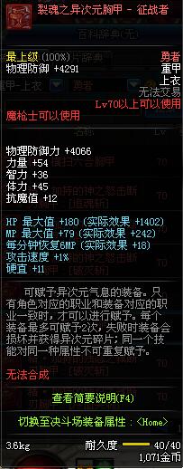| 70 | 裂魂之异次元胸甲 - 征战者 | |||