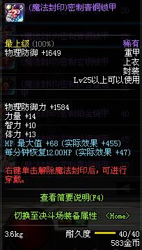 | 20 | (魔法封印)密制精铁锁甲 | *Lv19~26普通地下城怪物掉落 *完成[烦人的蚂蚁]任务 *使用Lv19~26怪物掉落的设计图进行制作 |