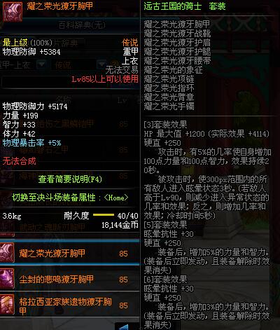 | 85 | 耀之荣光獠牙胸甲 | *昨日之巴斯顿 掉落 (在远古地下城里出没。) *从NPC鲁特的物品店出售的[耀之荣光防具礼盒]中获得 |