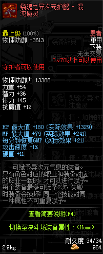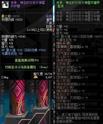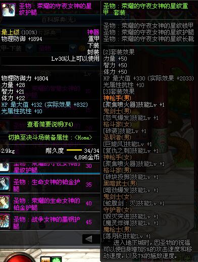 | 30 | 圣物 :荣耀的守夜女神的星纹护腿 | *Lv29~36普通地下城怪物掉落 |