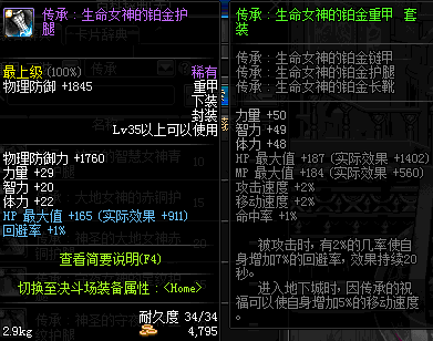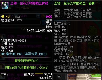 | 35 | 圣物 :生命女神的铂金护腿 | *Lv34~41普通地下城怪物掉落 |